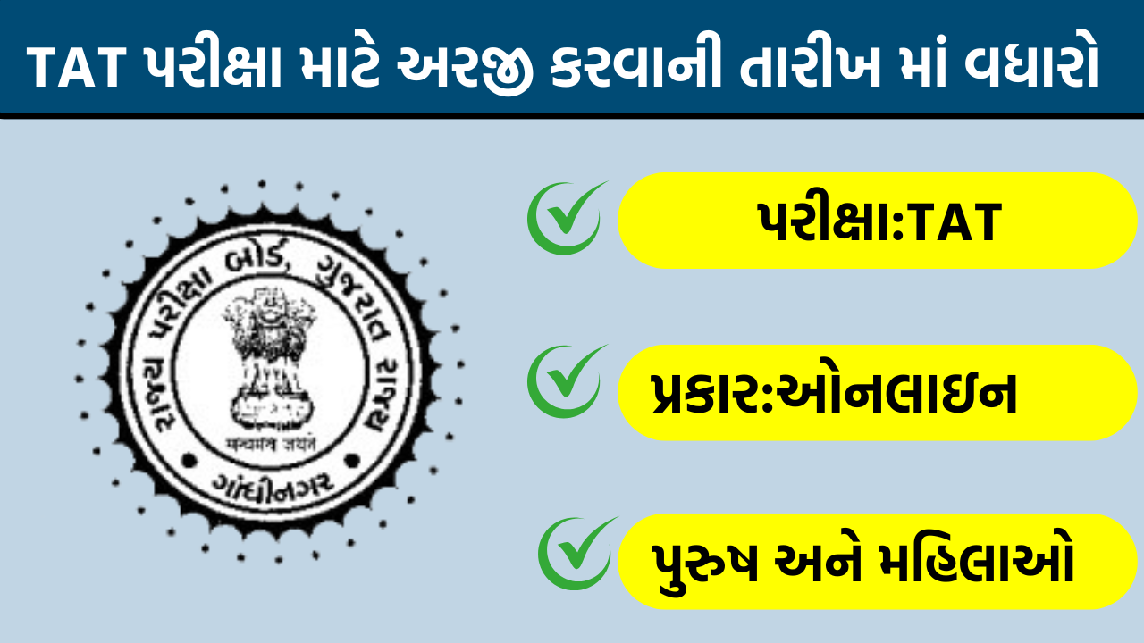 TAT Exam New Dates:TAT (Secondary) પરીક્ષા માટે ઓનલાઇન અરજી અને ફી ભરવાની તારીખ માં વધારો